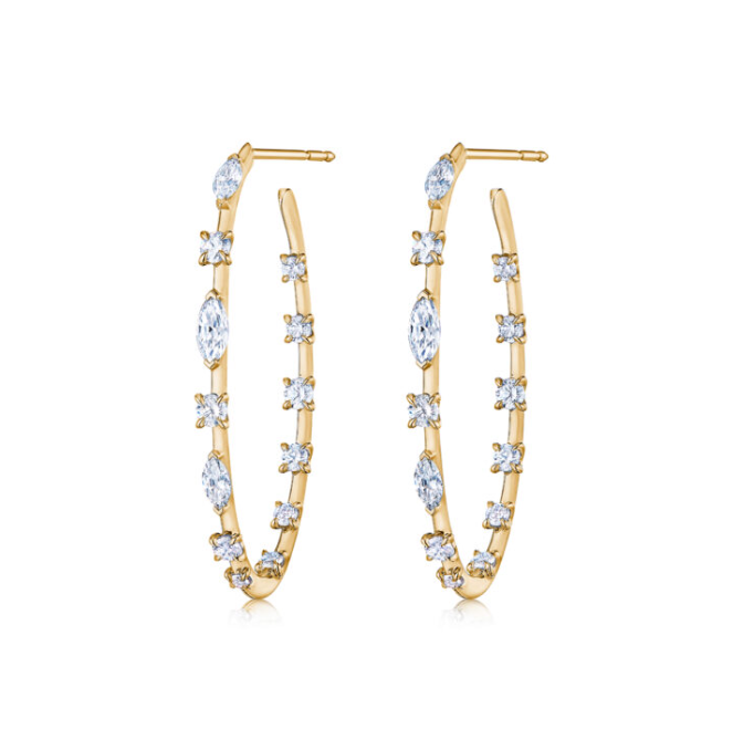 High Bar Gold Station Caviar Hoop Earrings -01-81882-00