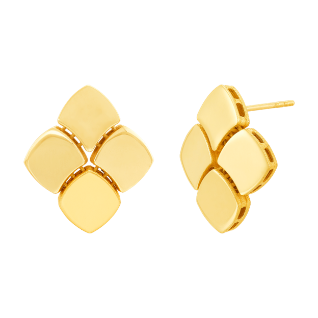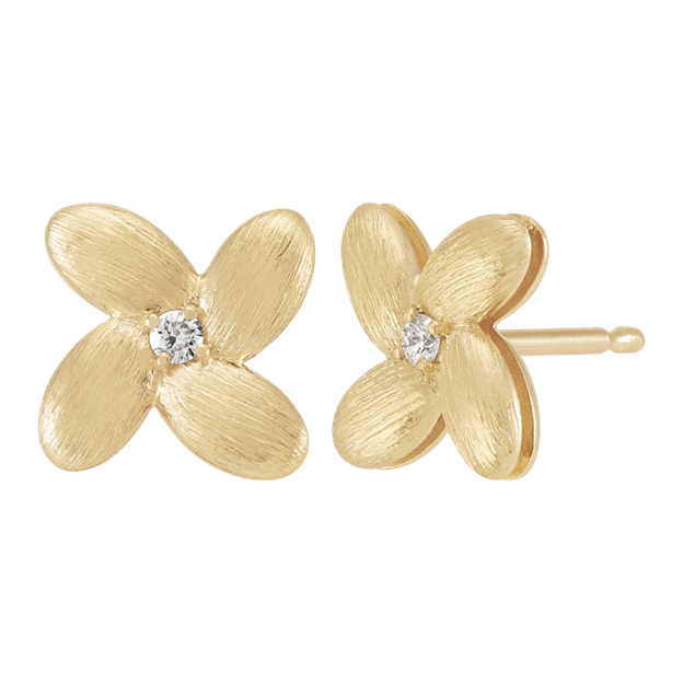 14k Italian Gold Satin Flower Diamond Stud Earrings -FDE085018YDM