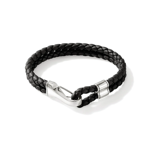 Silver & Leather Double Row Hook Clasp Bracelet -BU901241BL