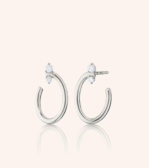 Silver Diamond Spark Wave Hoop Earrings -01-82118-DD