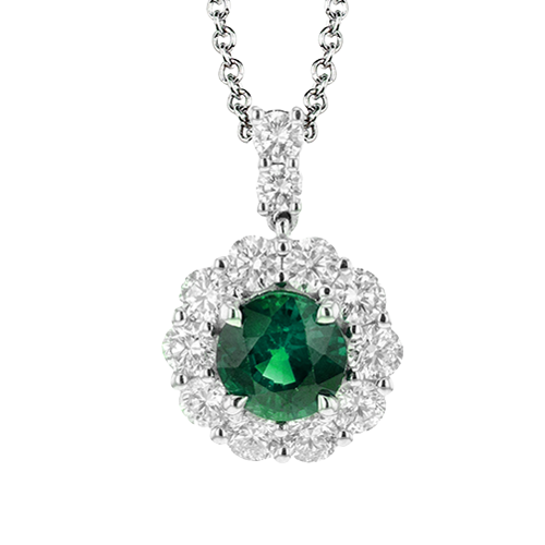 Emerald Diamond Halo Pendant Necklace -MP2047 EM