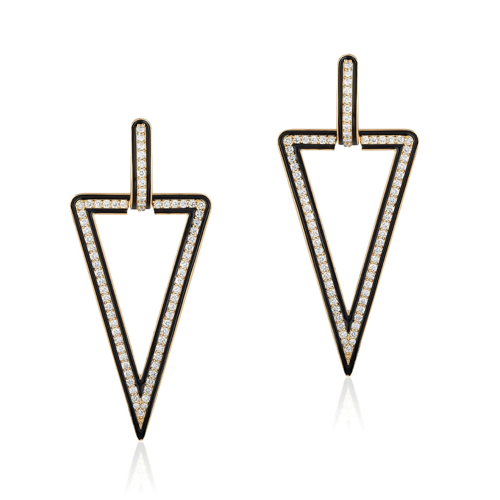 Queen Triangular Diamond Earrings with Enamel - JE0457-DIAENBLKY