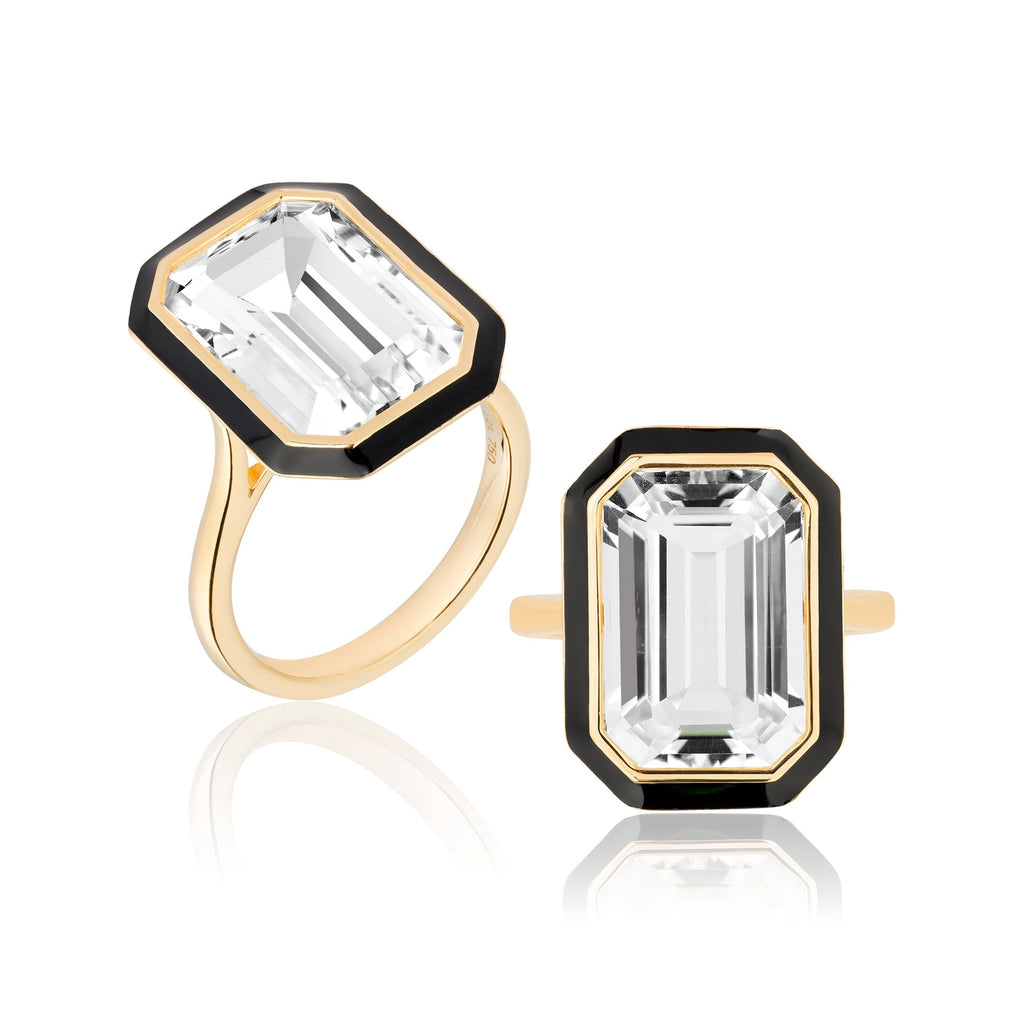 Queen Emerald Cut Enamel Ring - JP0281-RC-ENBLK-Y