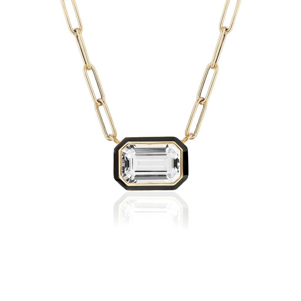 Queen East-West Emerald Cut Enamel Pendant - JP0143-RC-ENBLK-Y
